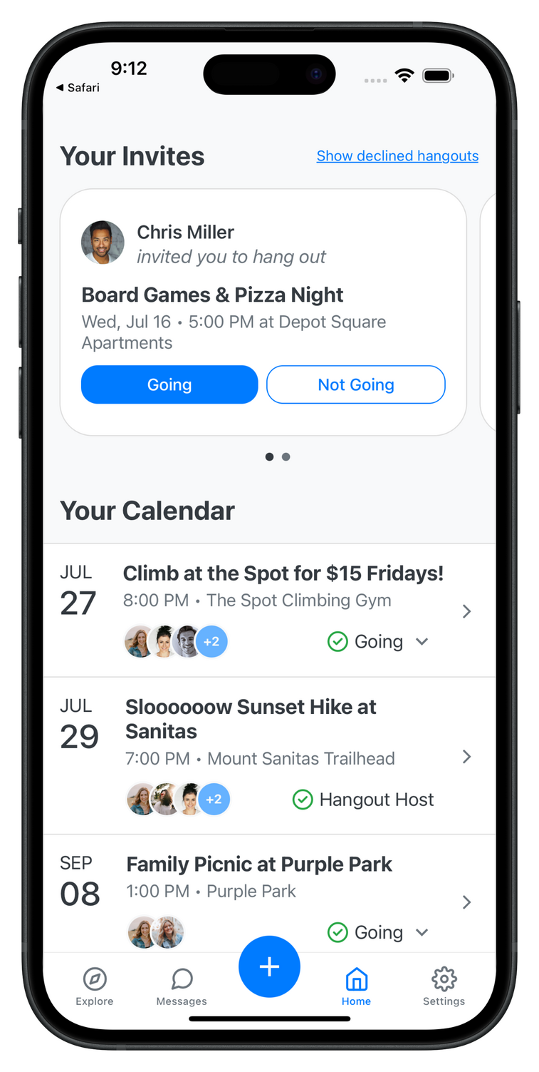 Koina allows users to create "hangouts" (group events) and send messages within a hangout chat. Any user attending a hangout will automatically be added to the related chat.By using Koina, you acknowledge:- You are solely responsible for your behavior and contributions.